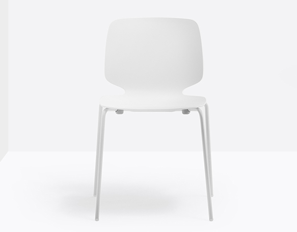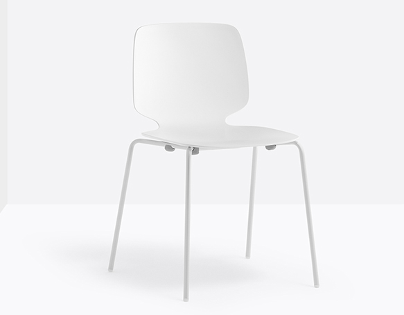 Stackable side chair. Technopolymer seat and back, chromed or powder coated round steel tub frame.