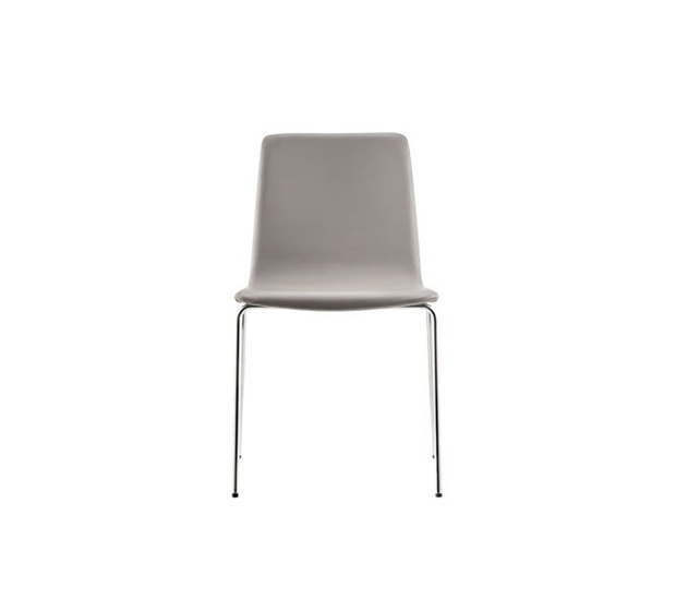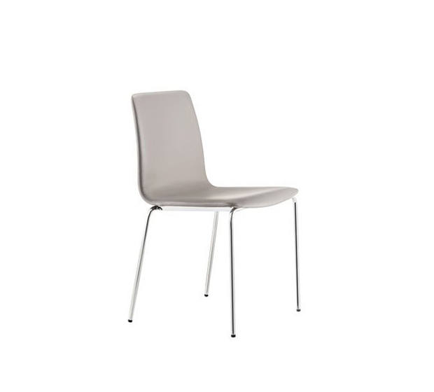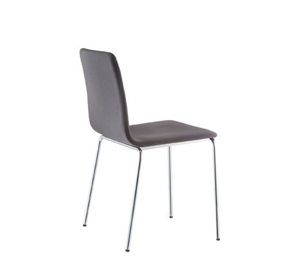 Side chair. Upholstered seat and back, chromed or powder coated round steel tub frame.