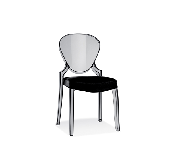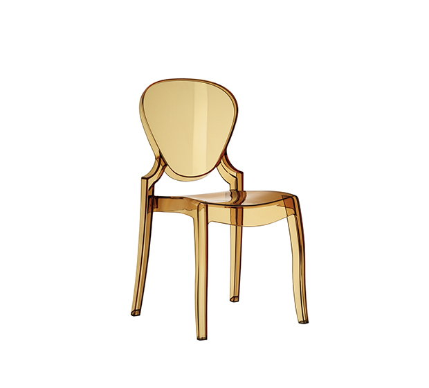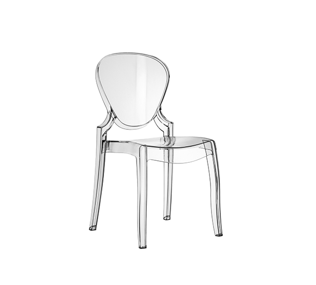 Stackable side chair. Made of polycarbonate. Suitable of outdoor use, except for black polycarbonate.