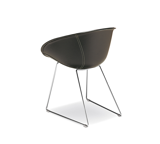 Armchair with a sled base. Genuine leather seat and back, chromed round steel tub frame.