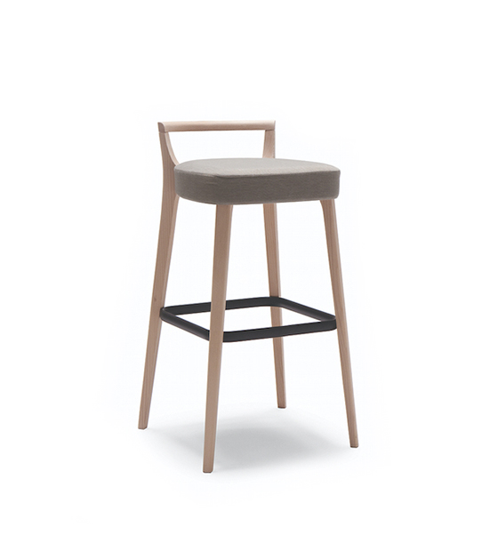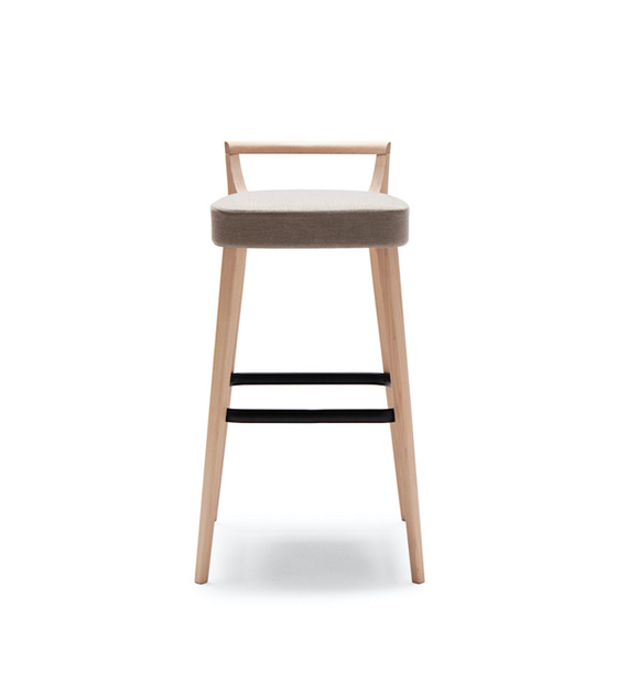 The metro 161 is a barstool with a beech wood back and upholstered seat. Black footrest.