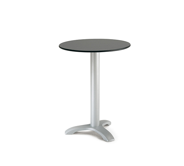 Cast-iron table base with round column. Chromed, brushed or powder coated 3 prong frame. Standard height.