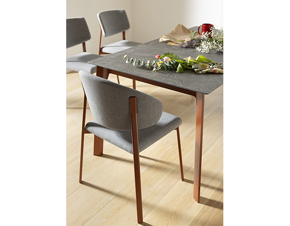 Chaise à bras. Structure en aluminium peint, joints moulés sous pression, assise et dossier rembourrés. Fabriqué en Italie.