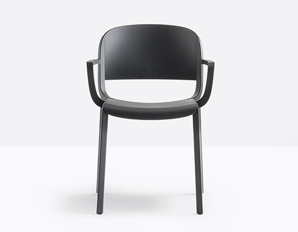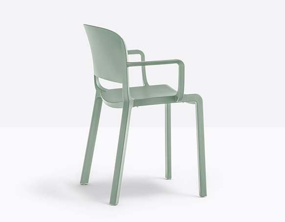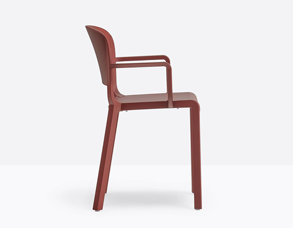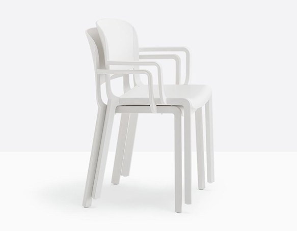 Chaise avec bras, empilable. Entièrement faite de polypropylène. Assise et dossier pleins. Adapté à l’usage extérieur.