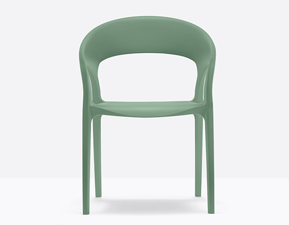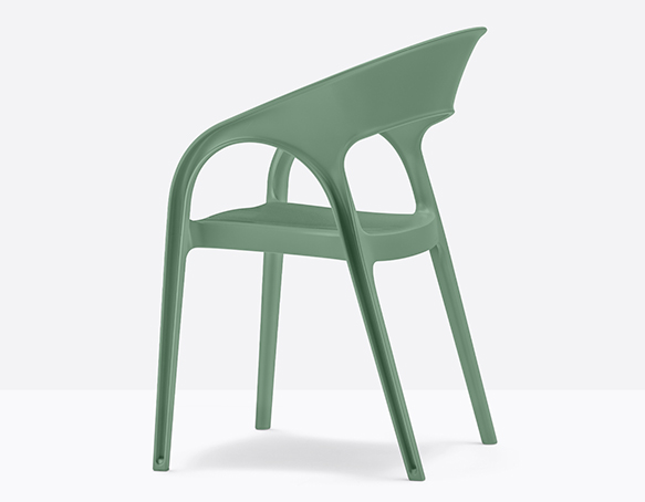 Chaise avec bras, adapté à l’usage extérieur. Empilable. Entièrement en polypropylène.
