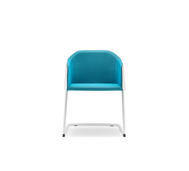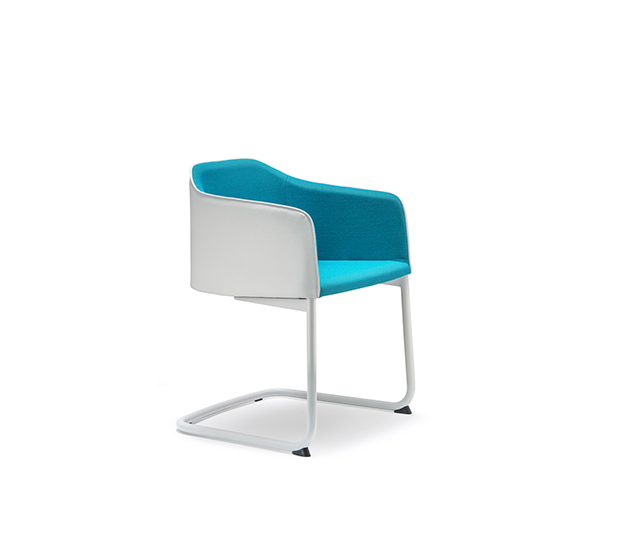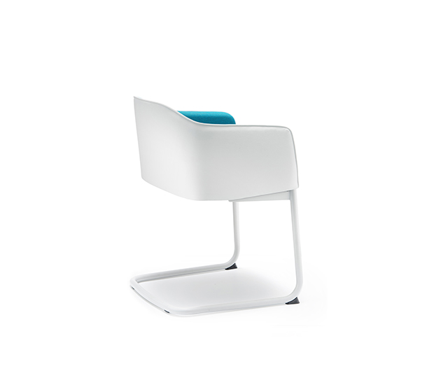 Chaise avec bras avec, base en porte-à-faux. Assise et dossier rembourrés, structure tubulaire ronde en acier chromé ou peint.
