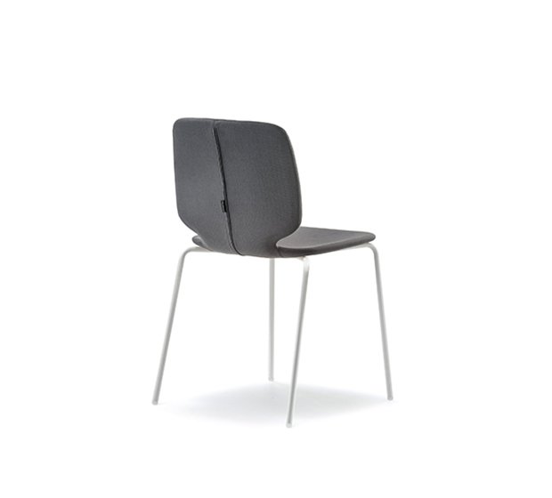 Chaise sans bras. Assise et dossier rembourrés, structure tubulaire ronde en acier chromé ou peint.