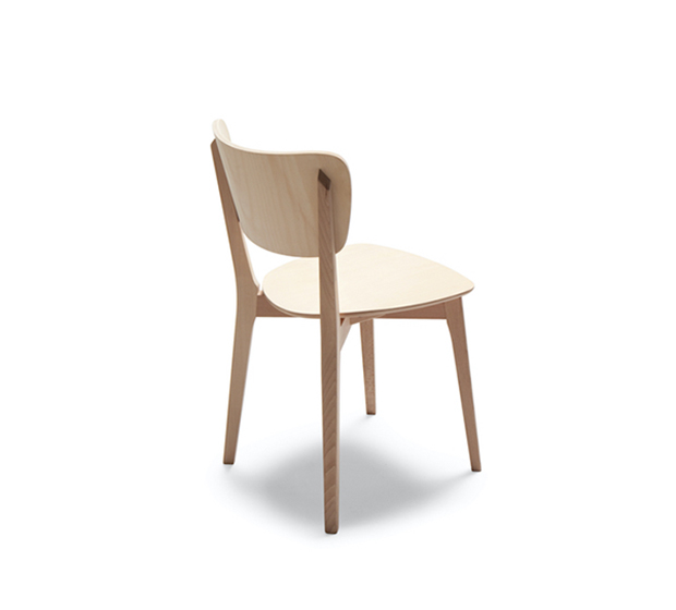 La Capitol 125 est une chaise sans bras en bois d’hêtre avec finis de bois ou laqué.