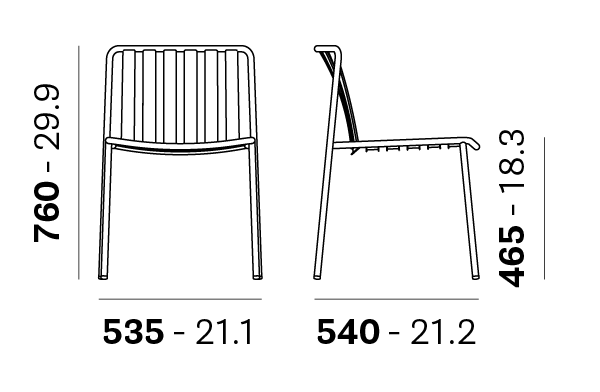 Chaise mono-matériau avec une structure en tube d’acier incurvé pour plus de solidité. L’assise et le dossier définissent le point d’appui de manière tridimensionnelle, ce qui garantit la solidité structurelle et l’ergonomie. Le dossier, en tôle moulée, recrée des lattes verticales équidistantes qui dialoguent avec les lattes horizontales de l’assise, définissant un motif distinctif. Coney convient aux zones de détente des espaces urbains ainsi qu’à l’aménagement des terrasses des restaurants et des habitations. Un coussin d’assise est disponible.