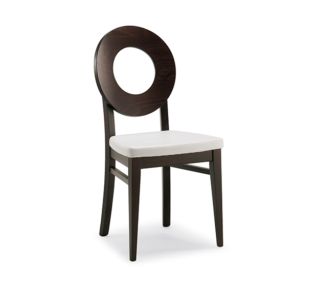 Chaise sans bras. Assise rembourrée et dossier en bois, structure en hêtre fini aniline, laqué ou antique.