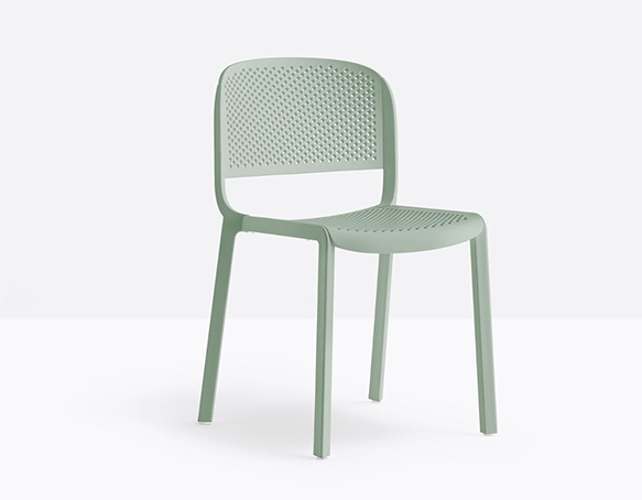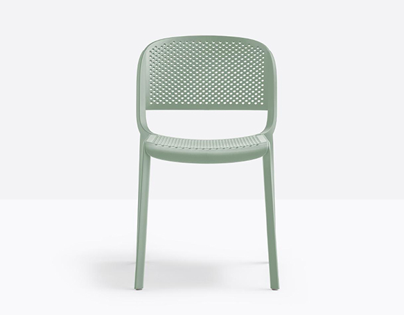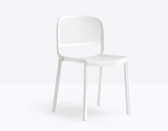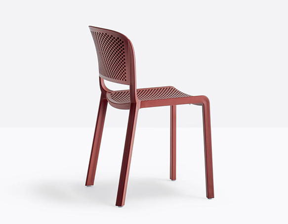 Chaise sans bras empilable. Entièrement fait de polypropylène. Assise et dossier perforés. Adapté à l’usage extérieur.