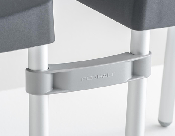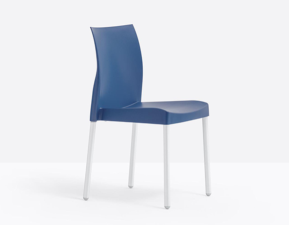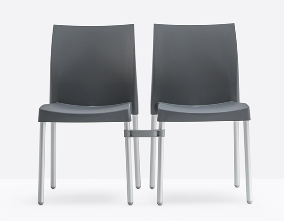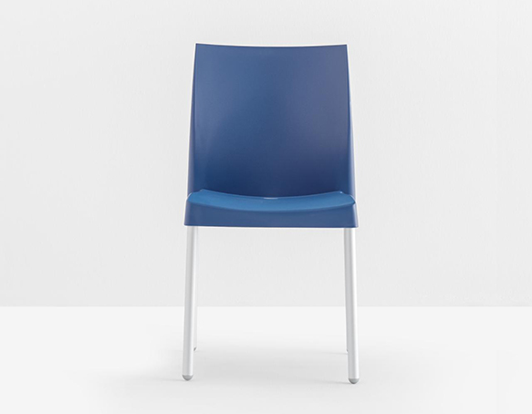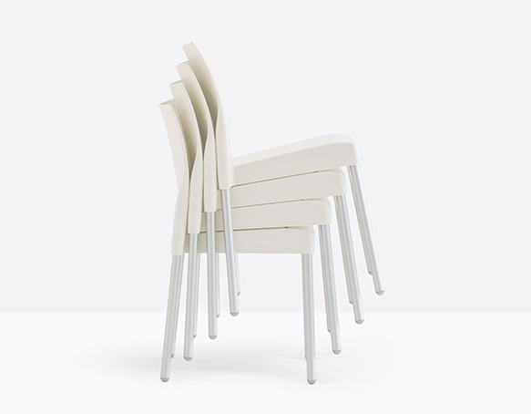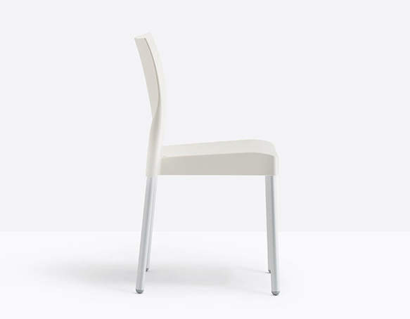 Chaise sans bras, empilable. Assise et dossier en polypropylène résistant aux rayons UV, structure tubulaire ronde en aluminium anodisé. Adapté à l’usage extérieur.