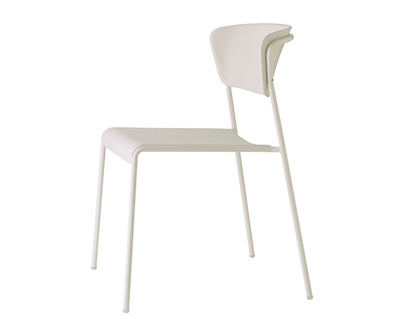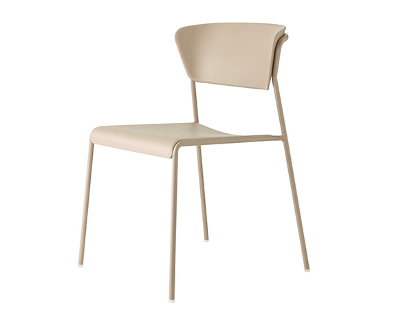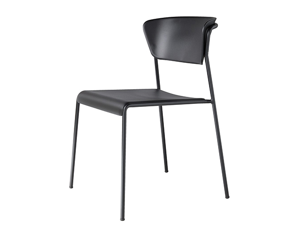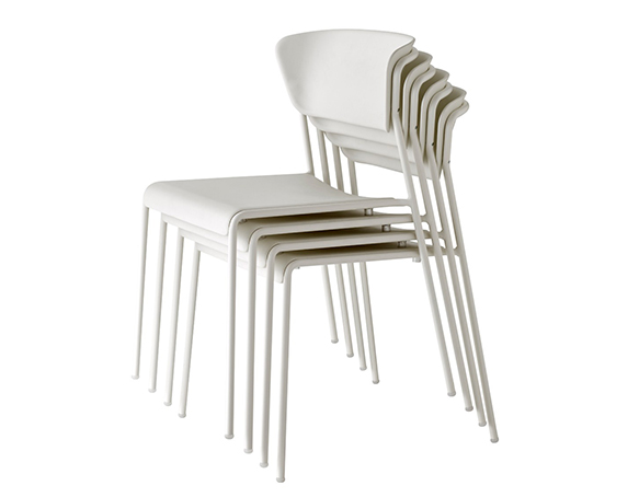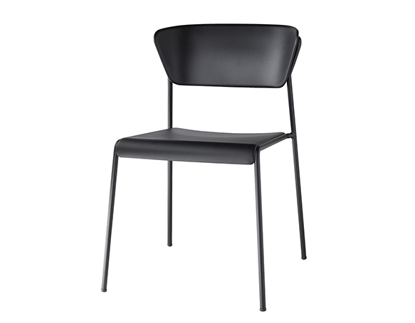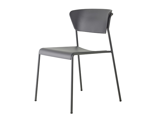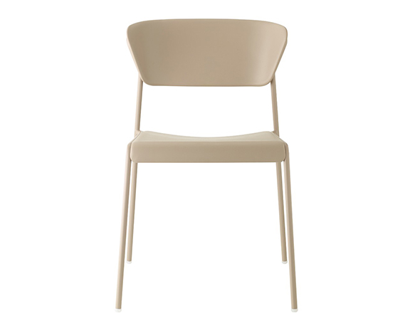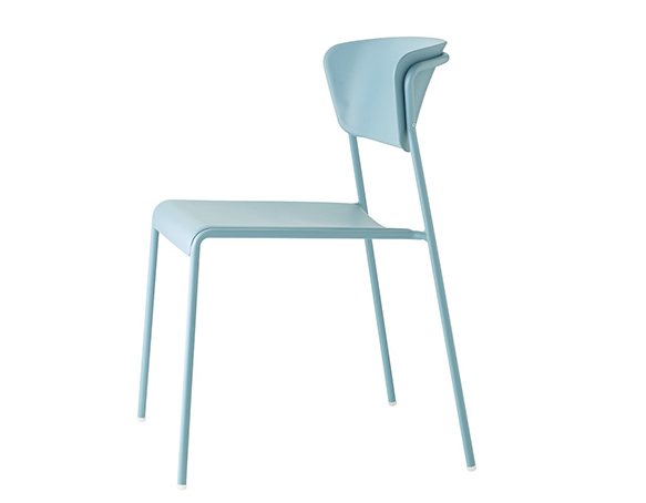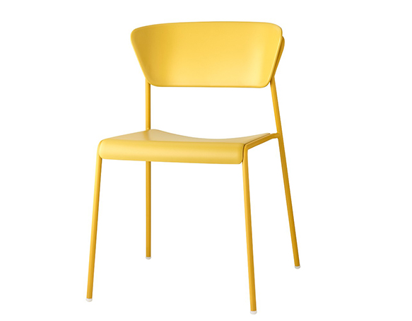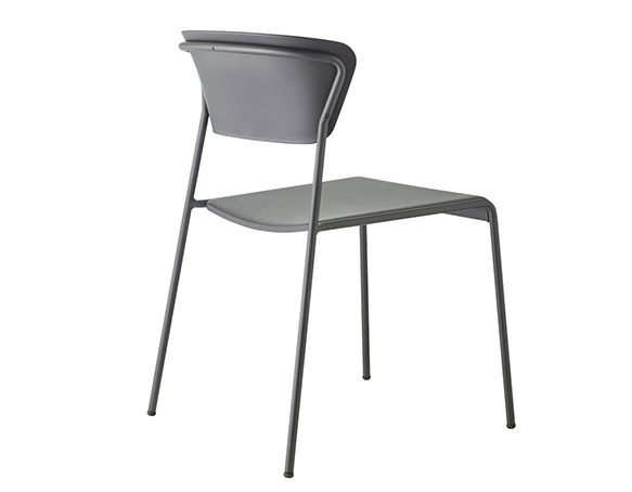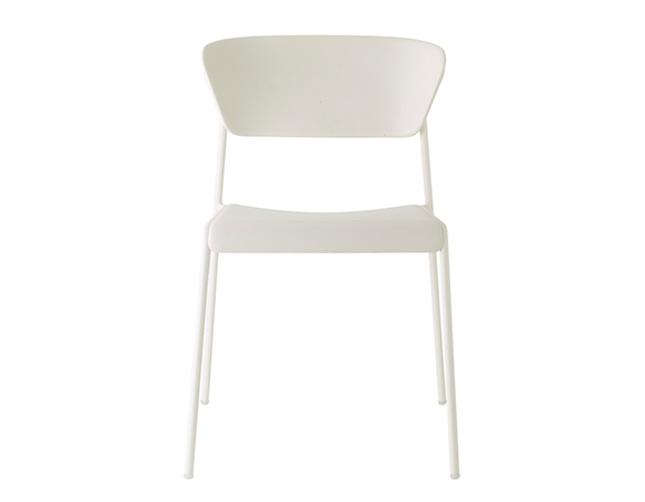 Chaise sans bras, structure en métal. Empilable. Assise et dossier en technopolymère.