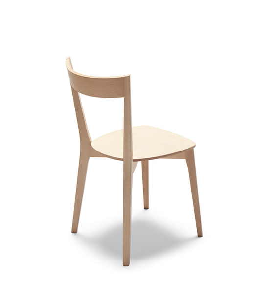 La Odeon 100 est une chaise sans bras avec assise, dossier et pattes en bois d’hêtre.