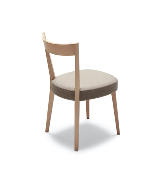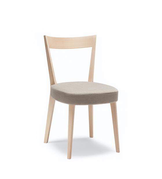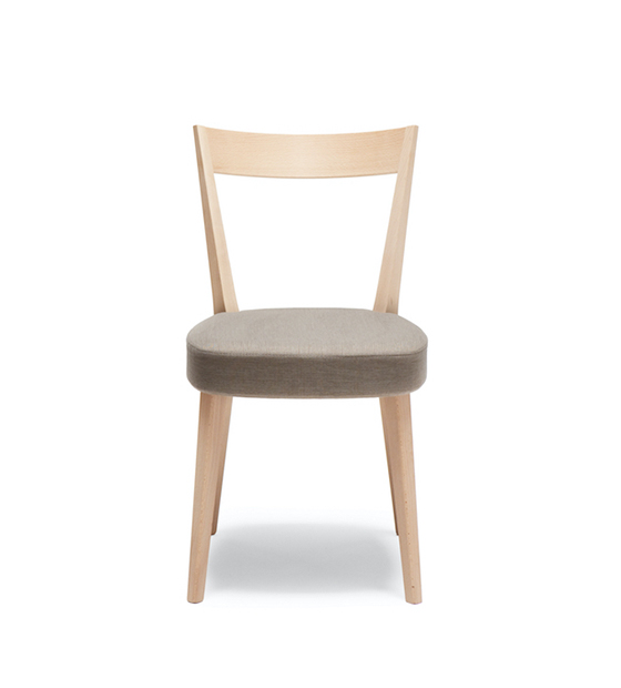 La Odeon 106 est une chaise sans bras avec assise rembourrée et dossier et structure en bois d’hêtre.