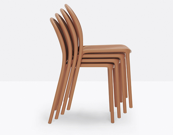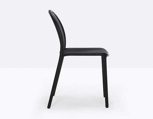 Chaise sans bras, empilable. Entièrement composé de polypropylène. Adapté à l’usage intérieur et extérieur.