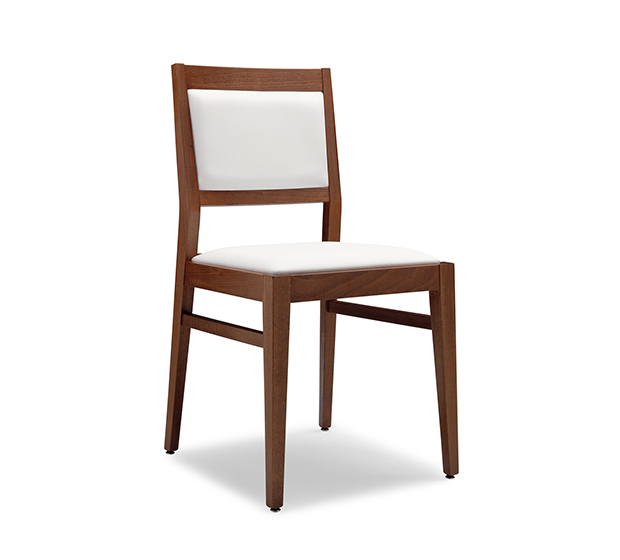 Chaise sans bras. Assise et dossier rembourrés, structure en hêtre fini aniline, laqué ou antique.