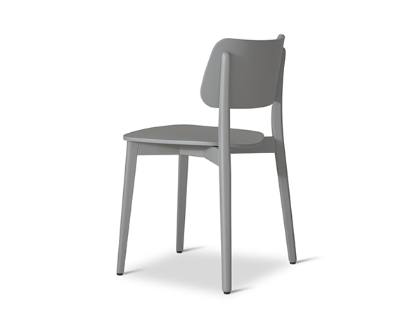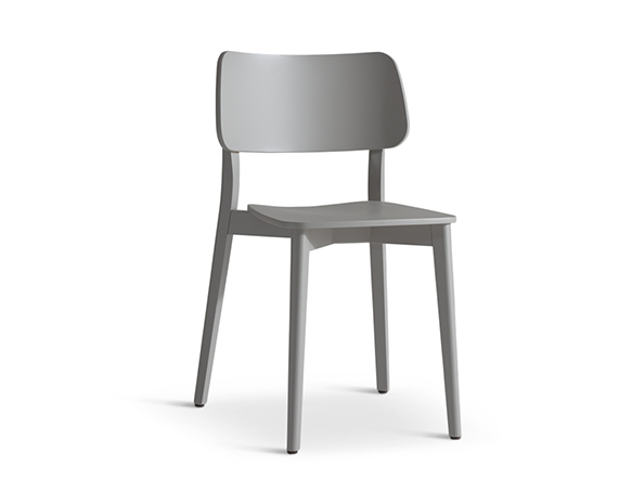 Chaise sans bras, en bois. Disponible en bois teint ou laqué.