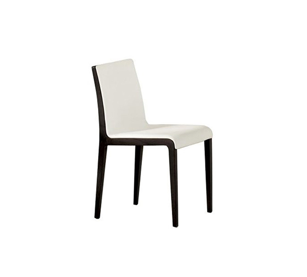 Chaise sans bras. Assise et dossier rembourrés, structure en chêne massif.