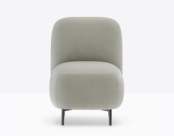 Siège lounge entièrement rembourré, base en aluminium.