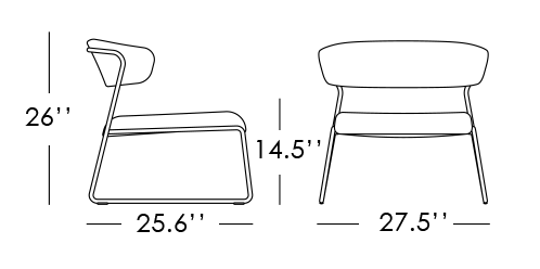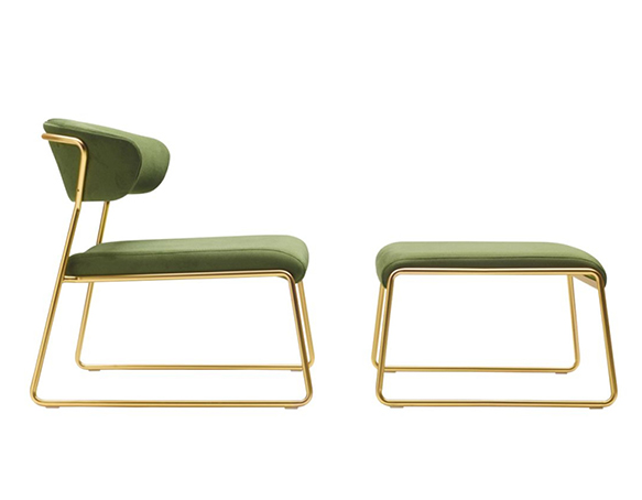 Chaise lounge, assise et dossier rembourrés, structure en métal. Repose-pieds disponible.