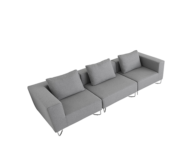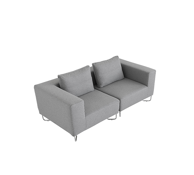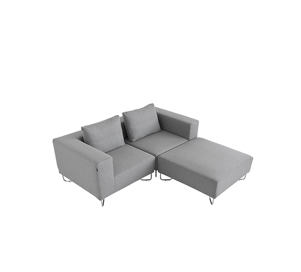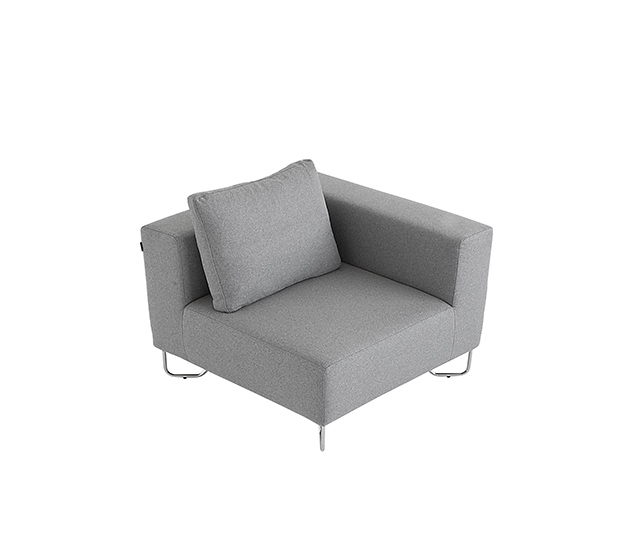 Sofa modulaire, élément de coin. Assise et dossier rembourrés, structure tubulaire ronde en acier chromé. Inclus un coussin pour le dossier.