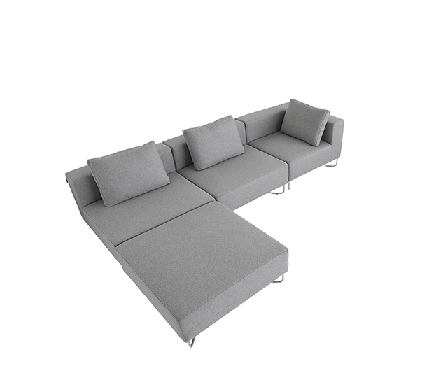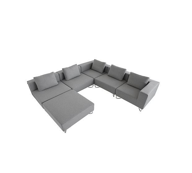 Sofa modulaire, pouf. Assise rembourrés, structure tubulaire ronde en acier chromé.