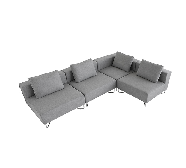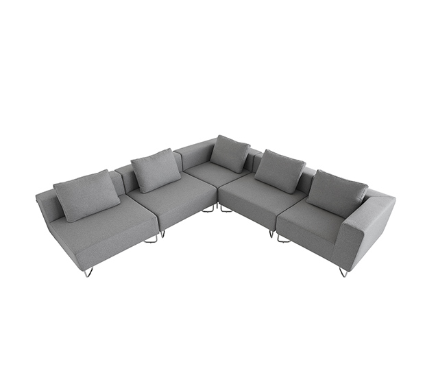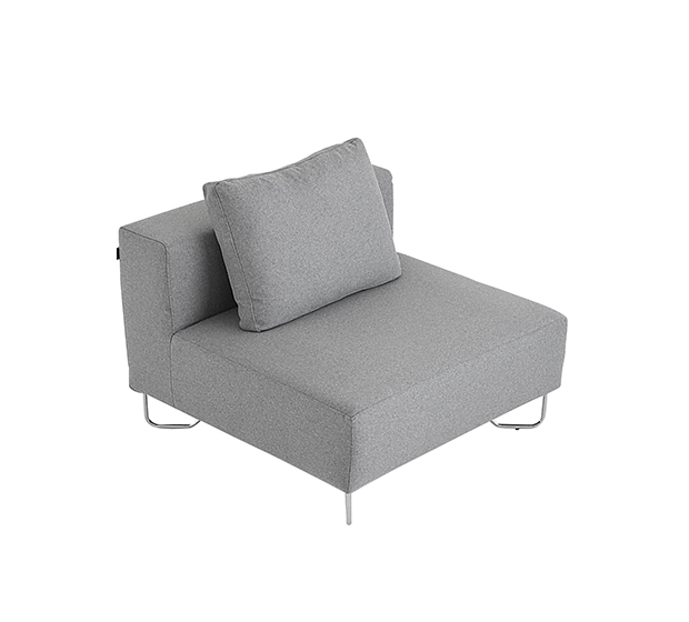 Sofa modulaire, élément simple. Assise et dossier rembourrés, structure tubulaire ronde en acier chromé. Inclus un coussin pour le dossier.