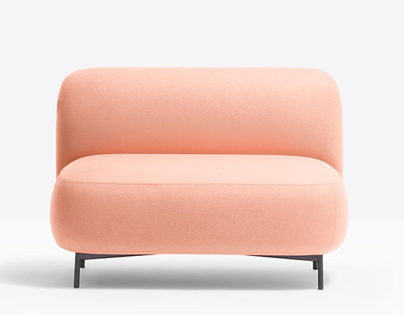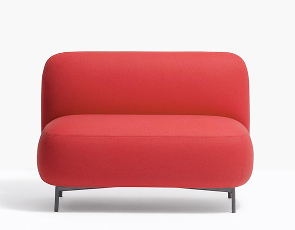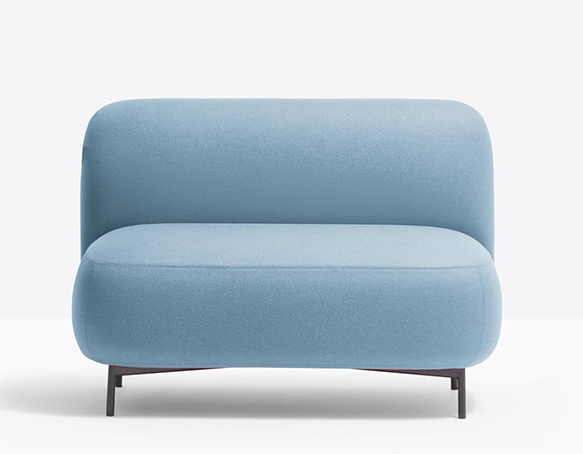 Siège lounge à deux places. Entièrement rembourré, base en aluminium. Table non incluse.