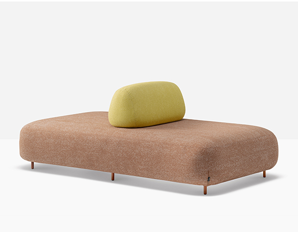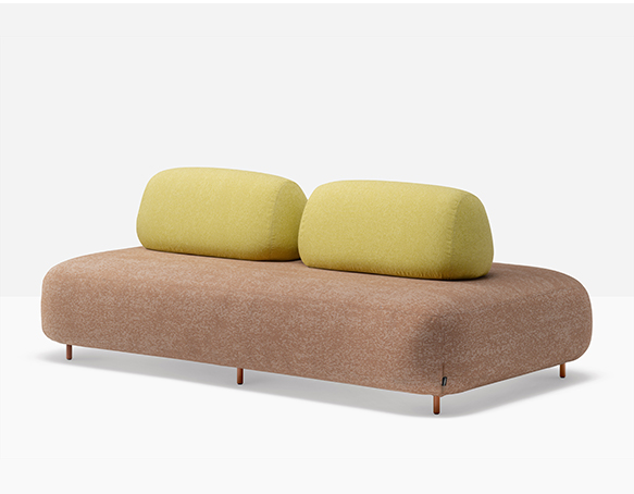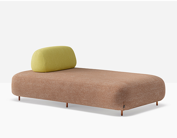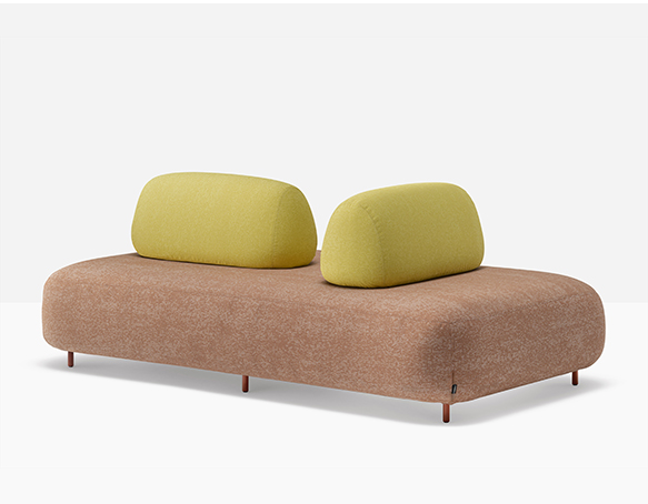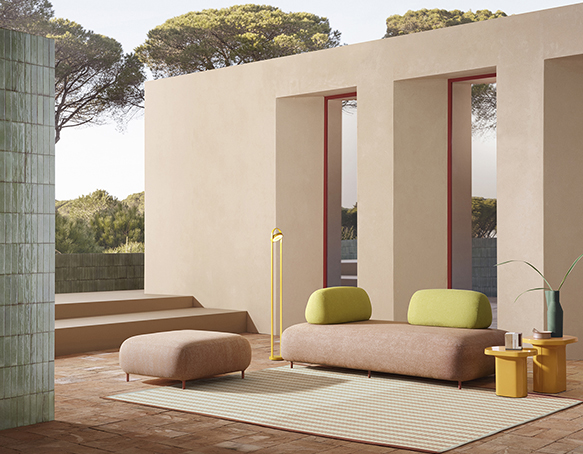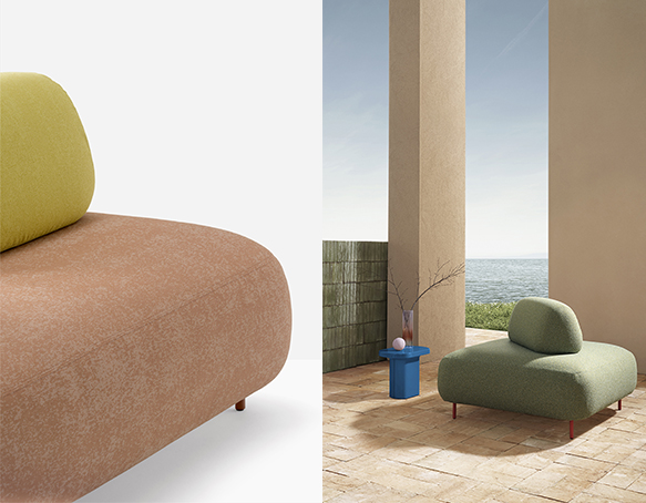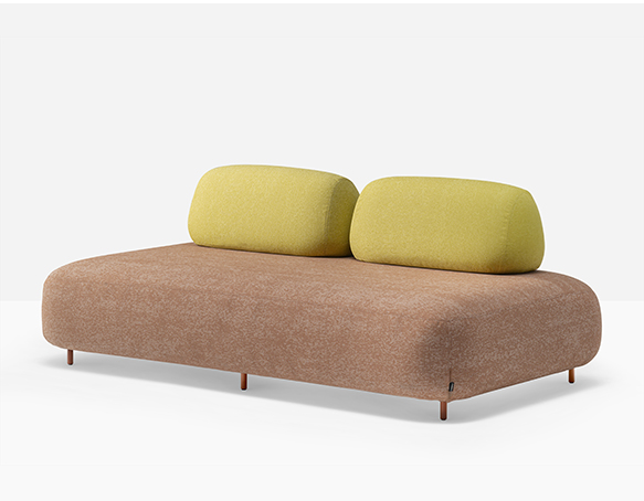 Canapé sectionnel pour l’extérieur. Assise rembourrée en mousse polyuréthane. Dossier mobile en mousse polyuréthane. L’assise et le dossier sont protégés par une housse imperméable et recouverts de tissu pour l’extérieur. Pattes en aluminium.