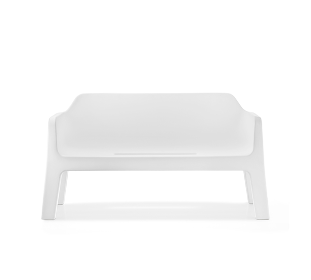 Sofa 2 places. Fait de polyéthylène. Adapté à l’usage extérieur, sauf pour polyéthylène gris anthracite.