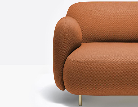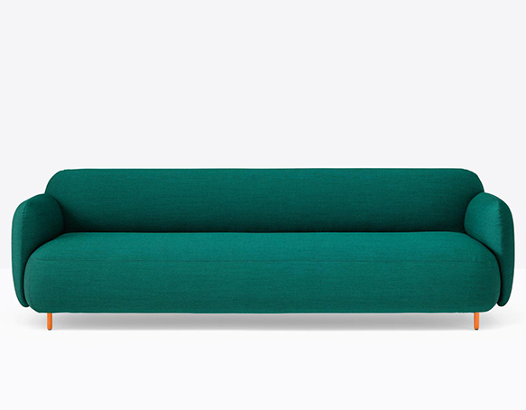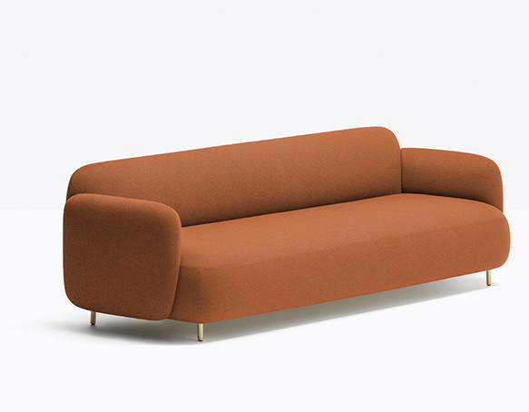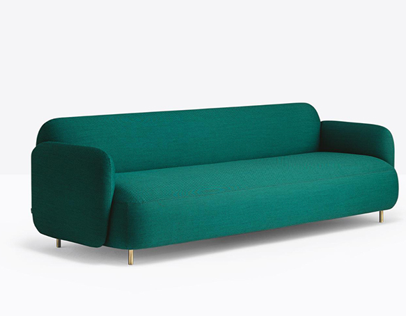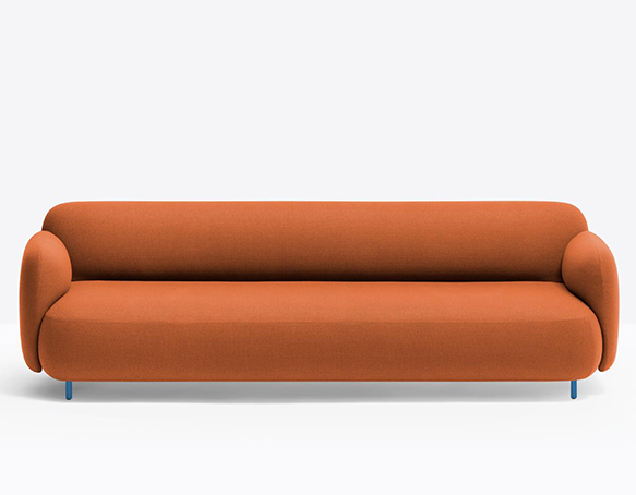 Canapé à trois places. Entièrement rembourré, base en aluminium. Aussi disponible sans accoudoirs.