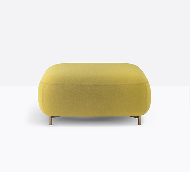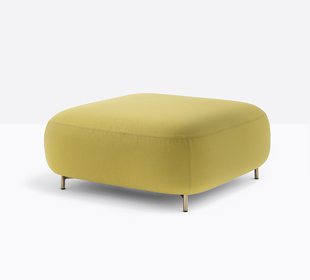 Pouf entièrement rembourré. Pattes en tube d’acier.