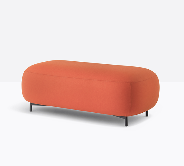 Pouf entièrement rembourré. Pattes en tube d’acier.