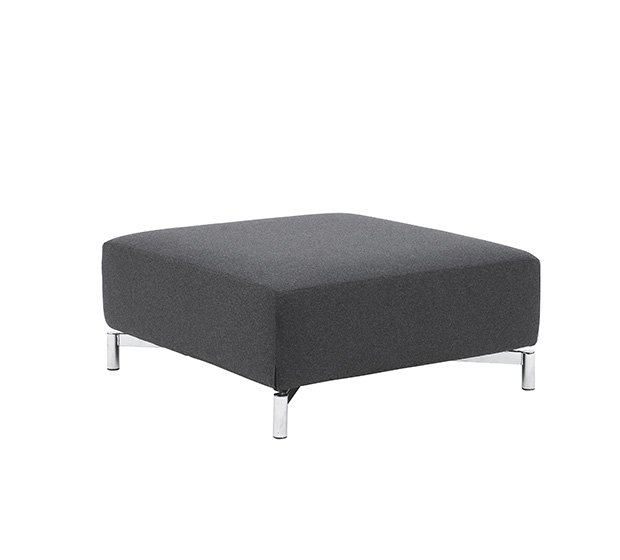 Sofa modulaire, pouf. Assise rembourrée, structure en acier chromé.