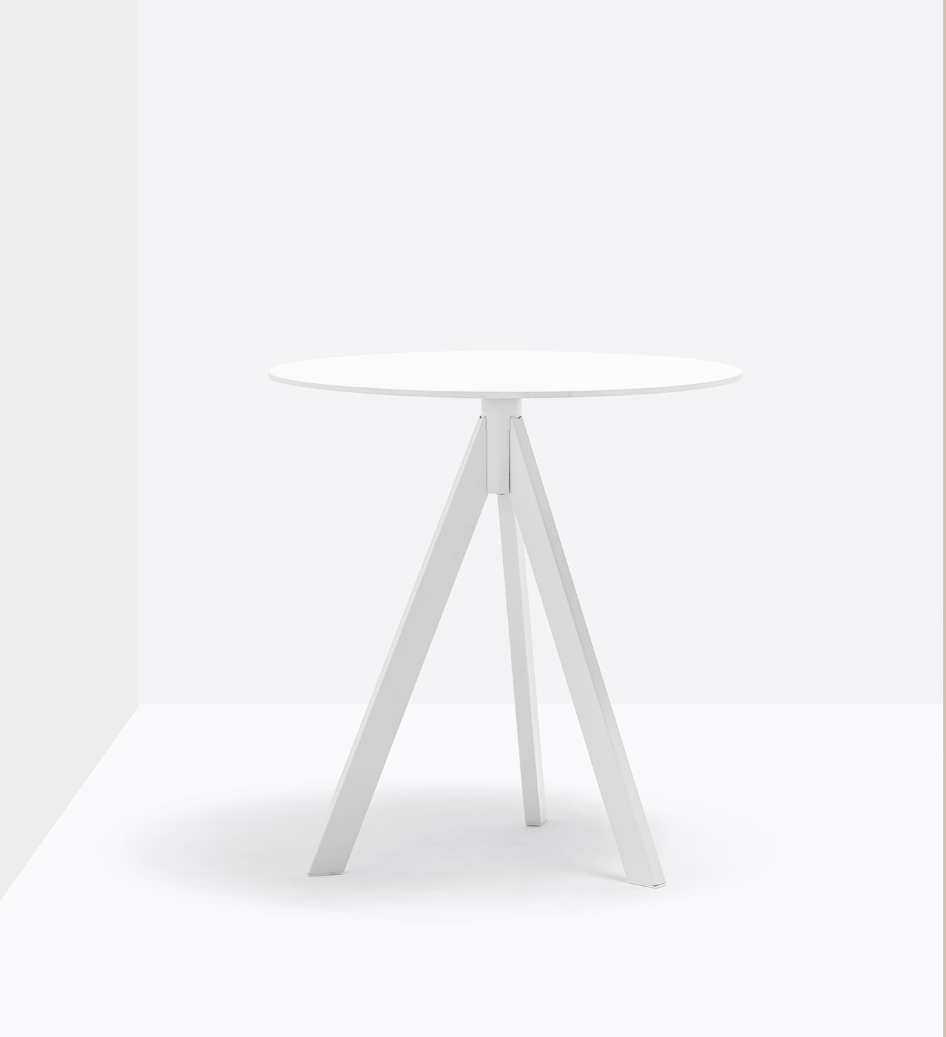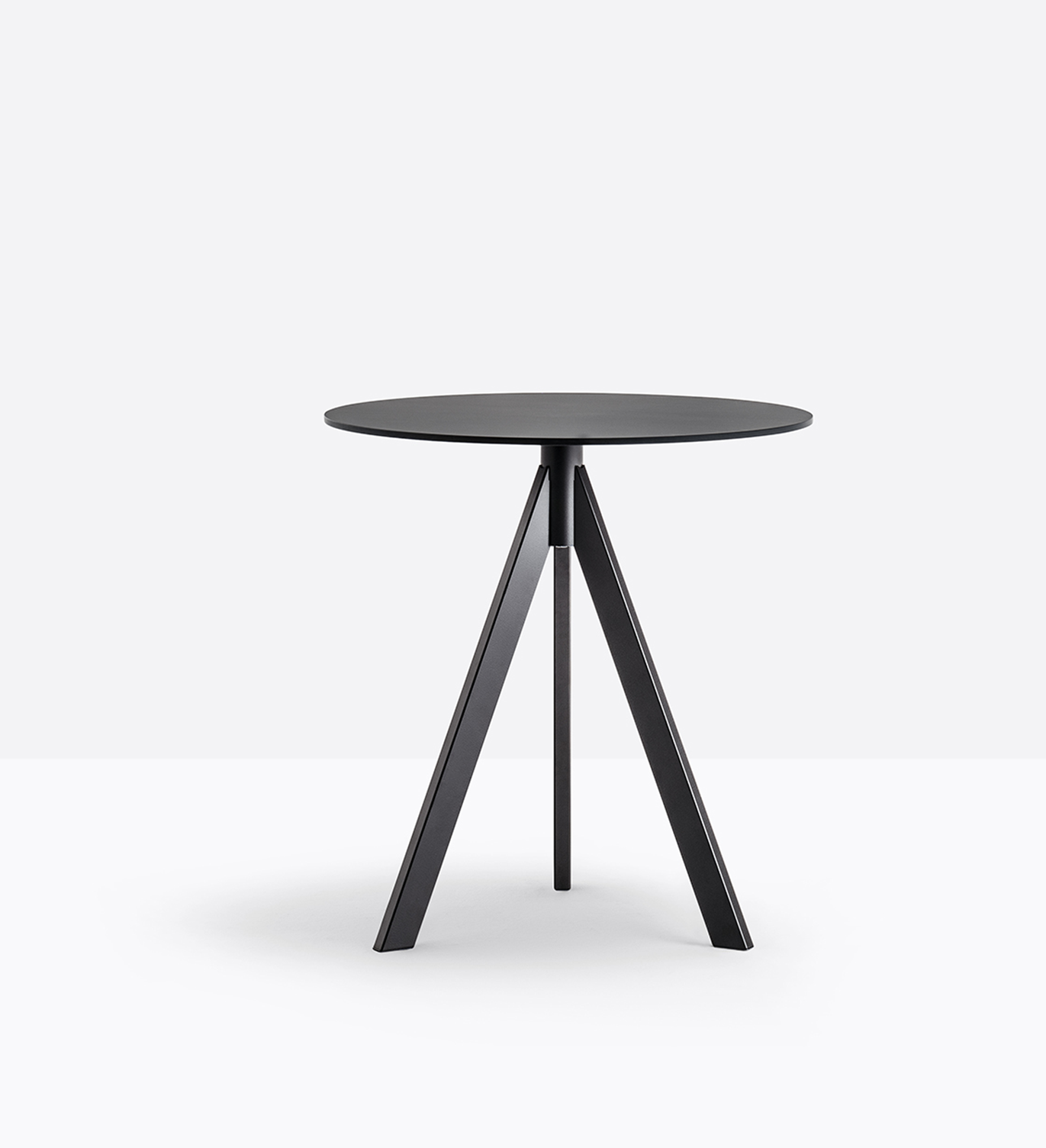 Base de table à trois pattes en tige d’acier peinte. Hauteur standard.