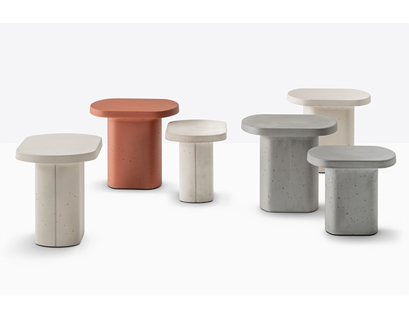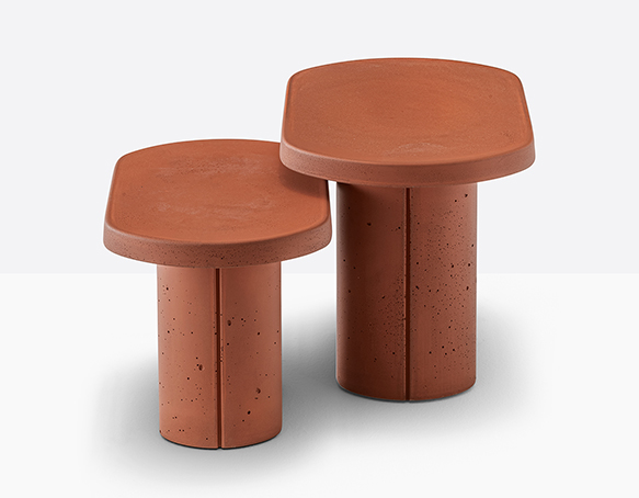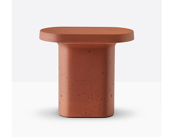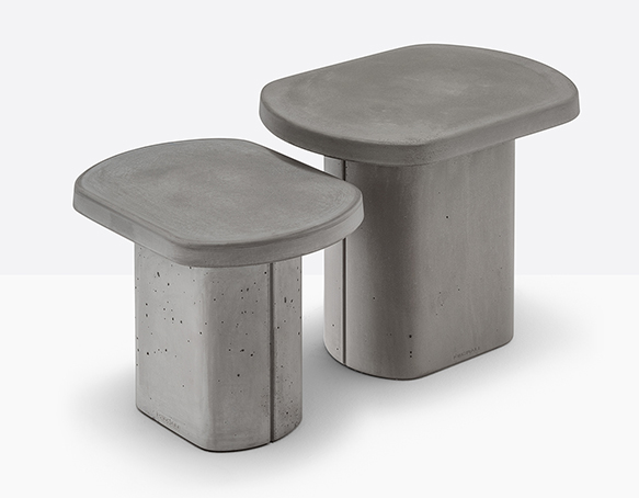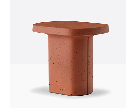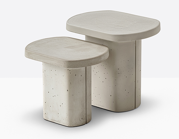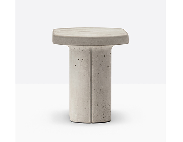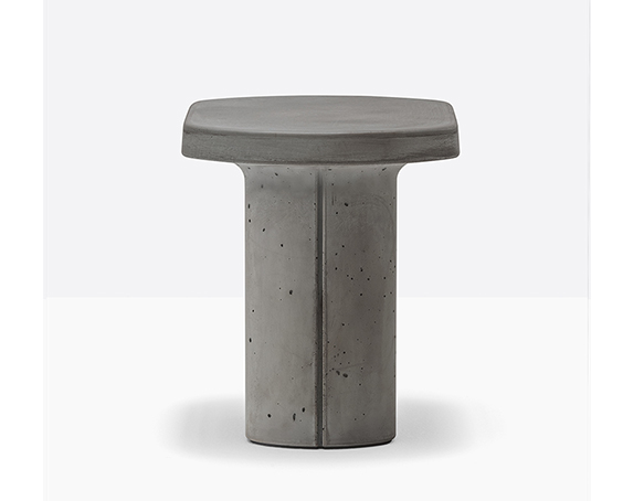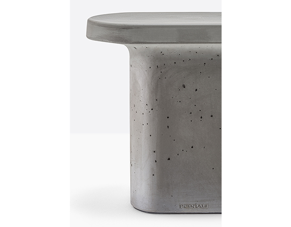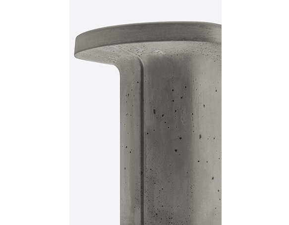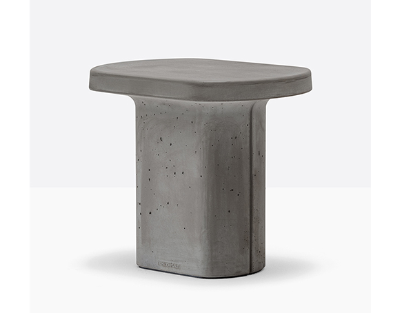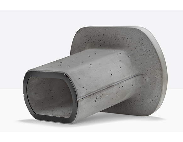 Table basse en ciment à base centrale. Intérieur creux, sous-patte en nylon. Adapté à l’usage extérieur.