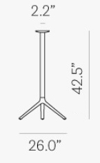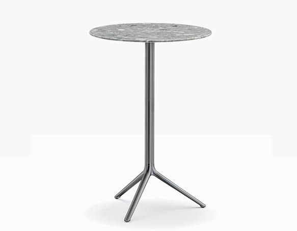 Elliot 5474 par Pedrali. Base de table haute avec piètement à 3 branches en aluminium moulé sous pression. Hauteur 42.50″. Adaptée à l’usage extérieur.
