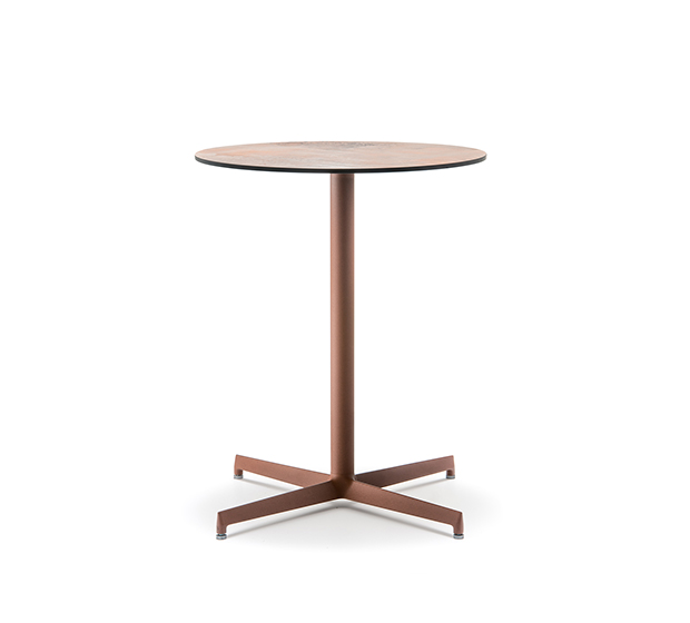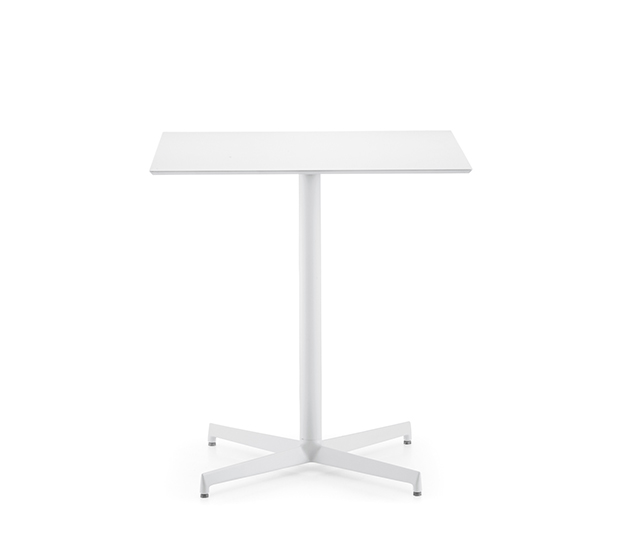 Base de table en aluminium à colonne centrale ronde. Structure à 4 pieds polis ou peints. Hauteur standard. Sous pattes ajustables incluses.