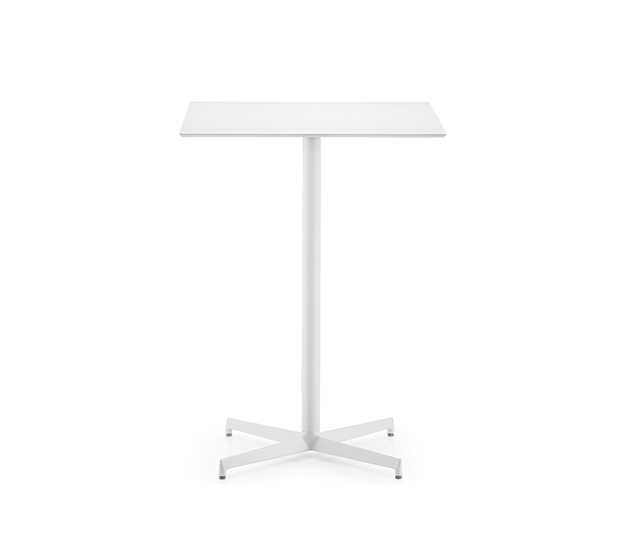 Base de table en aluminium à colonne centrale ronde. Structure à 4 pieds polis ou peints. Hauteur bar. Sous pattes ajustables incluses.