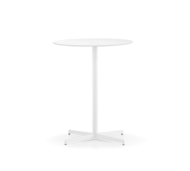 Base de table en aluminium à colonne centrale ronde. Structure à 4 pieds polis ou peints. Hauteur bar. Sous pattes ajustables incluses.