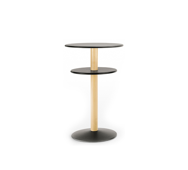 Base de table à 2 plateaux, colonne et pied central ronds. Hauteur bar.