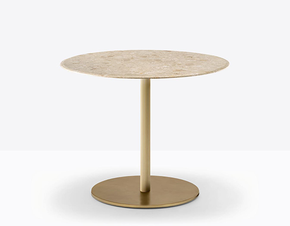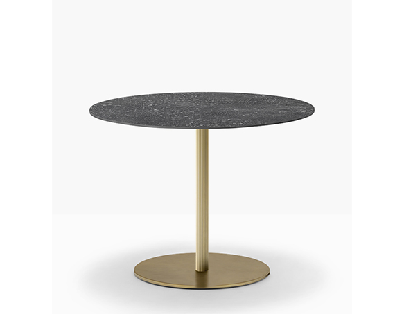 Base de table à colonne centrale ronde striée, en aluminium extrudé. Grande base centrale ronde en acier ou en fonte.