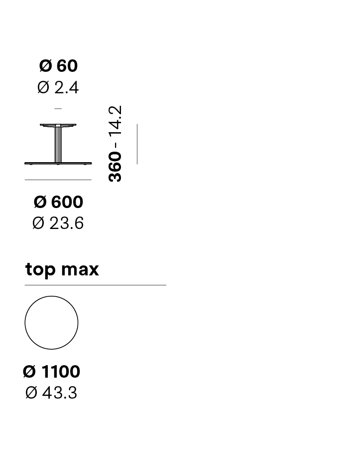- Disponible en trois (3) différents hauteurs. Dimensions maximales du plateau Ø43.3 » .