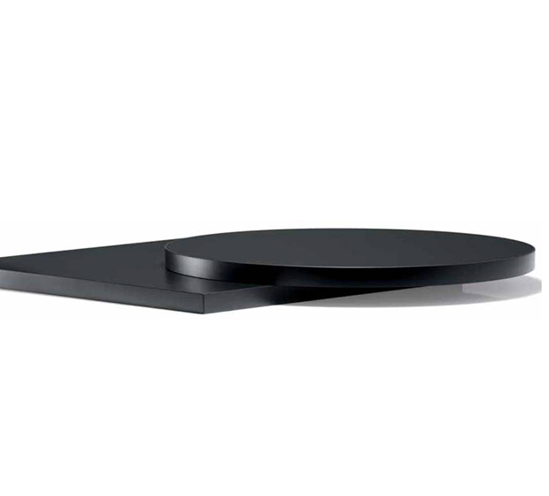 Plateau de table en stratifié. Cœur en bois aggloméré et bordure en ABS.