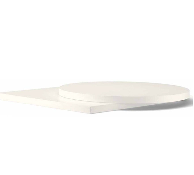 Plateau de table en stratifié. Cœur en bois aggloméré et bordure en ABS.