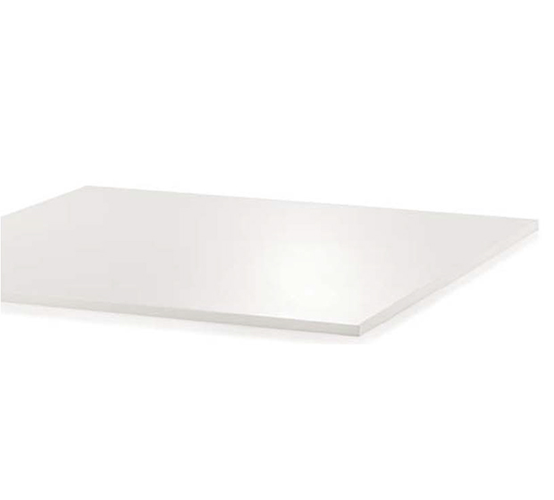 Plateau en acier peint. Coeur en MDF à l’épreuve de l’eau et bordure droite.