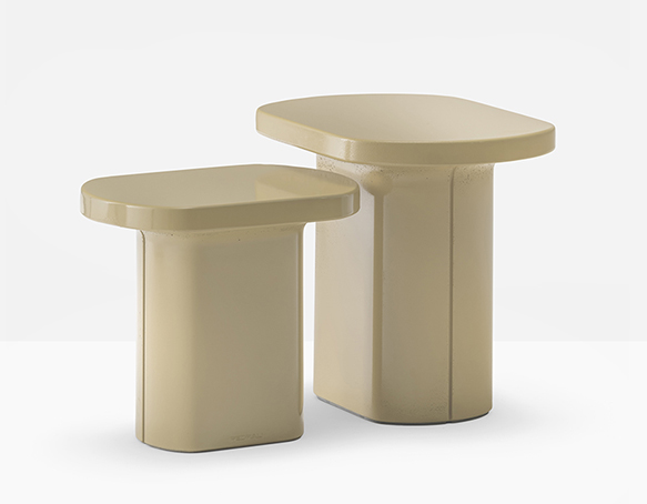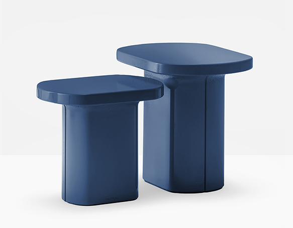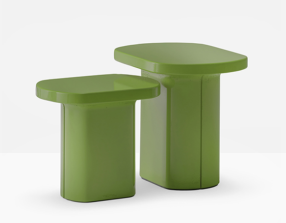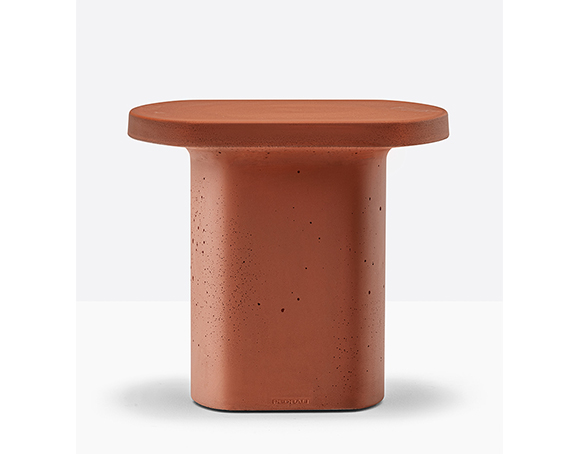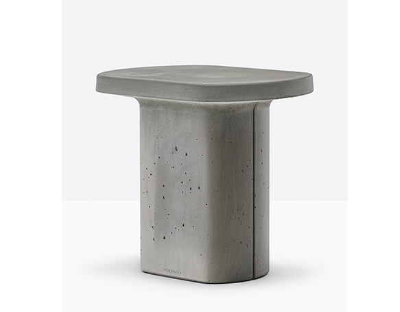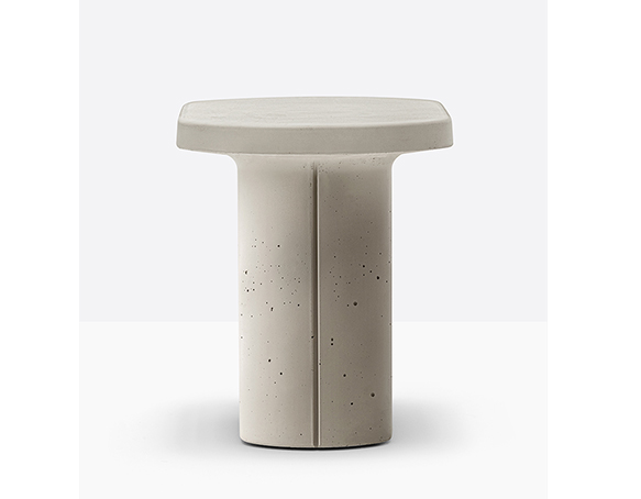 Table basse en ciment à base centrale. Intérieur creux, sous-patte en nylon. Adapté à l’usage extérieur.