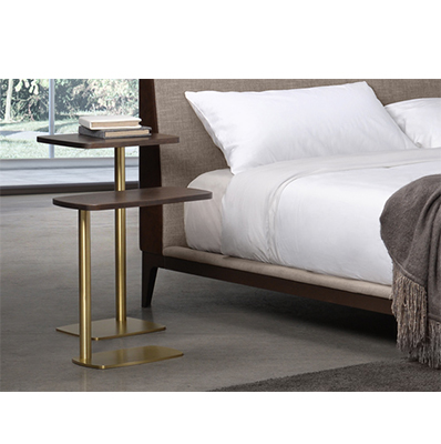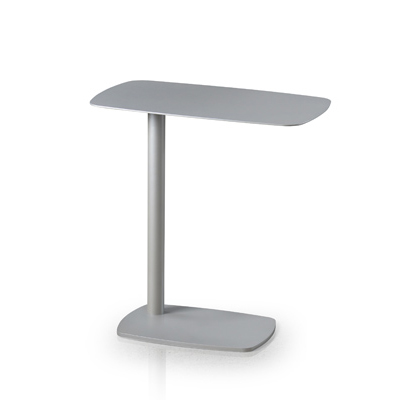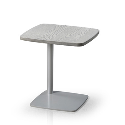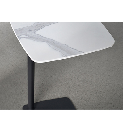 Table d’appoint. Structure en métal. Plateau en métal peint, bois massif (chêne rouge ou merisier), ou porcelaine. Disponible avec plateau rectangulaire ou carré. Trois hauteurs disponibles.