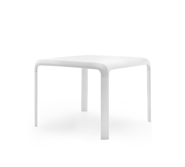 Table à 4 pattes. Plateau en polypropylène et pattes en aluminium. Hauteur Basse.